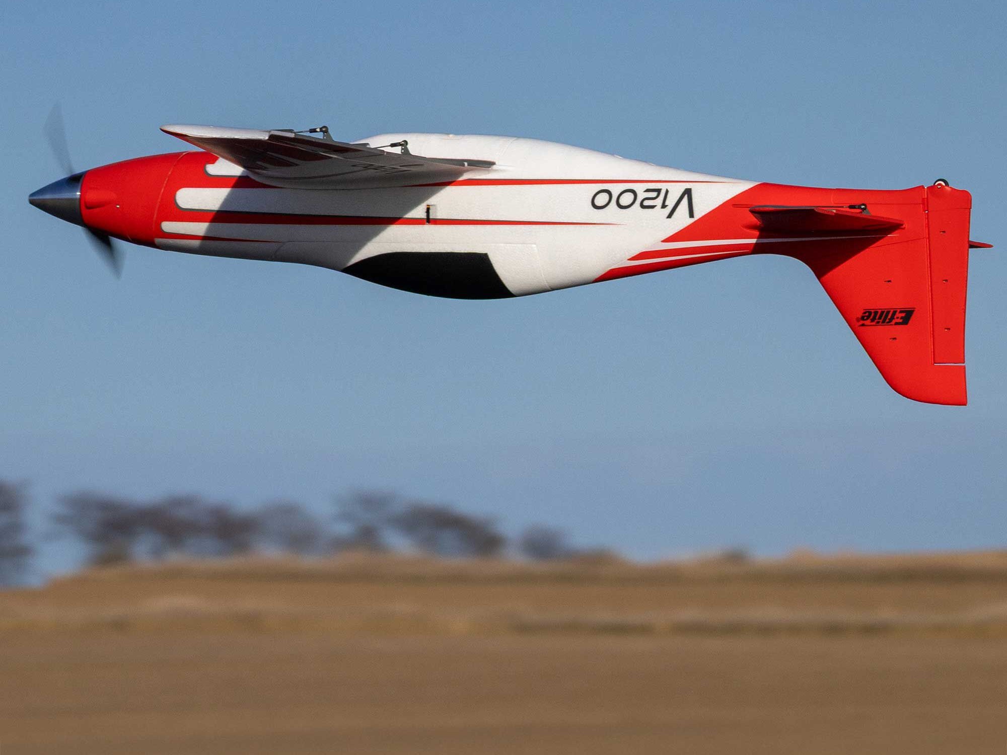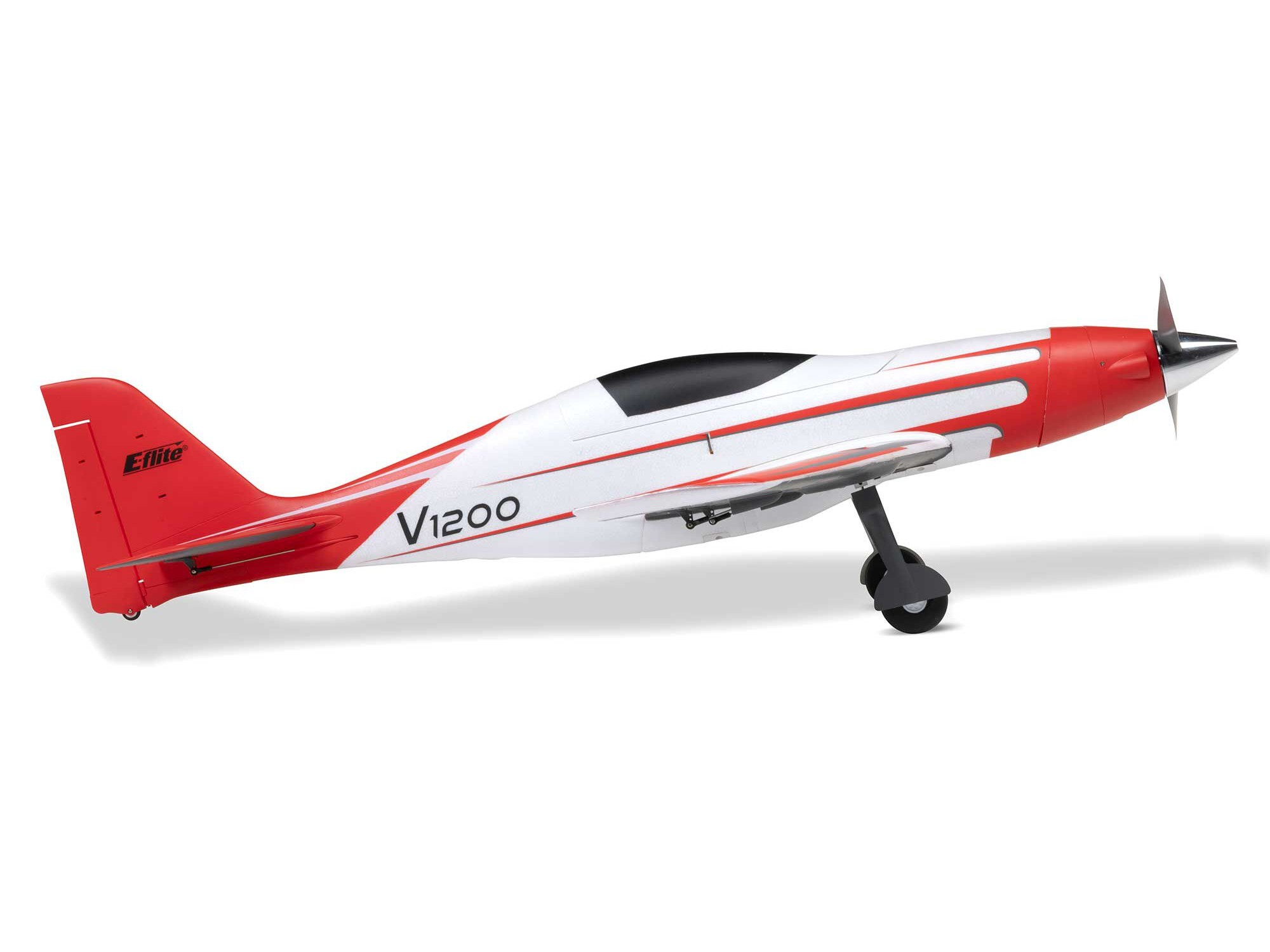 The V1200 is the fastest prop-driven E-flite airplane yet! It can reach level-flight top speeds of 140+ MPH on 6S, or 110+ MPH on 4S, right out of the box. This updated and upgraded version includes more durable and reliable retracts, a higher visibility colour scheme with improved decals.