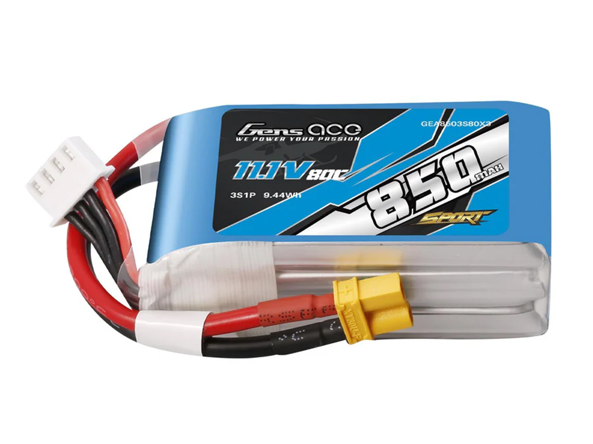 Gens ace 850mAh 11.1V 3S1P 80C Lipo Battery is designed for F5J and performance motorgliders, particularly small sizes. They are in true 80C discharge rate, and only weighted 73g. Gens ace 850mAh 3S lipo can provides your drone long enough flying time whilst adding only very little weight to your RC helis.