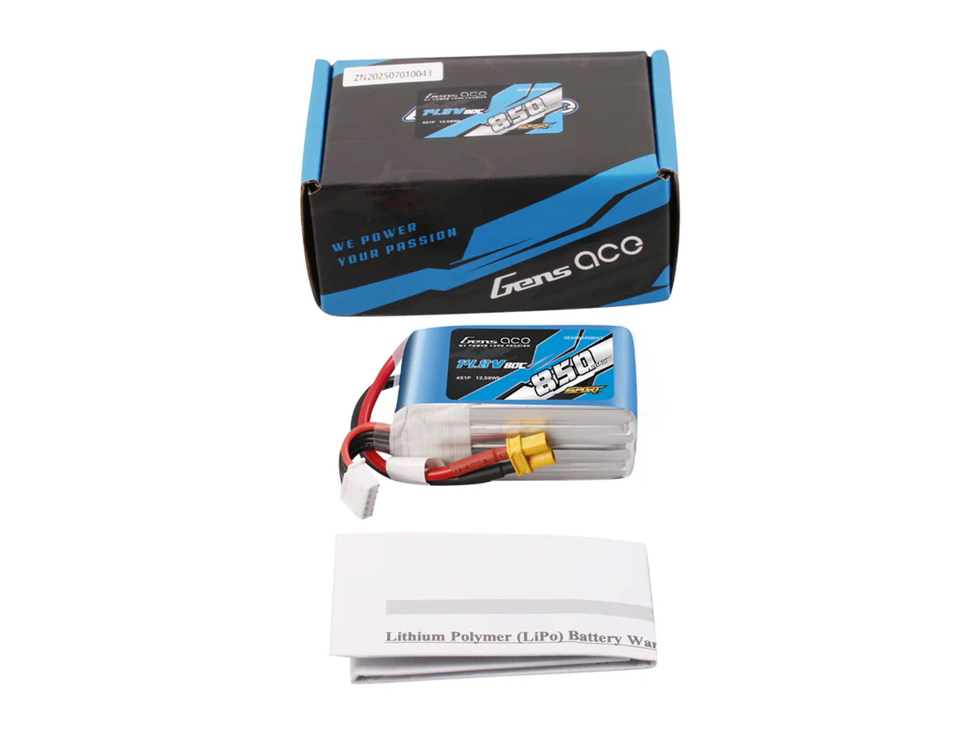 Gens ace 850mAh 14.8V 4S1P 80C Lipo Battery is designed for F5J and performance motorgliders, particularly small sizes. They are in true 80C discharge rate, and only weighted 96g. Gens ace 850mAh 4S lipo can provides your drone long enough flying time whilst adding only very little weight to your RC helis.