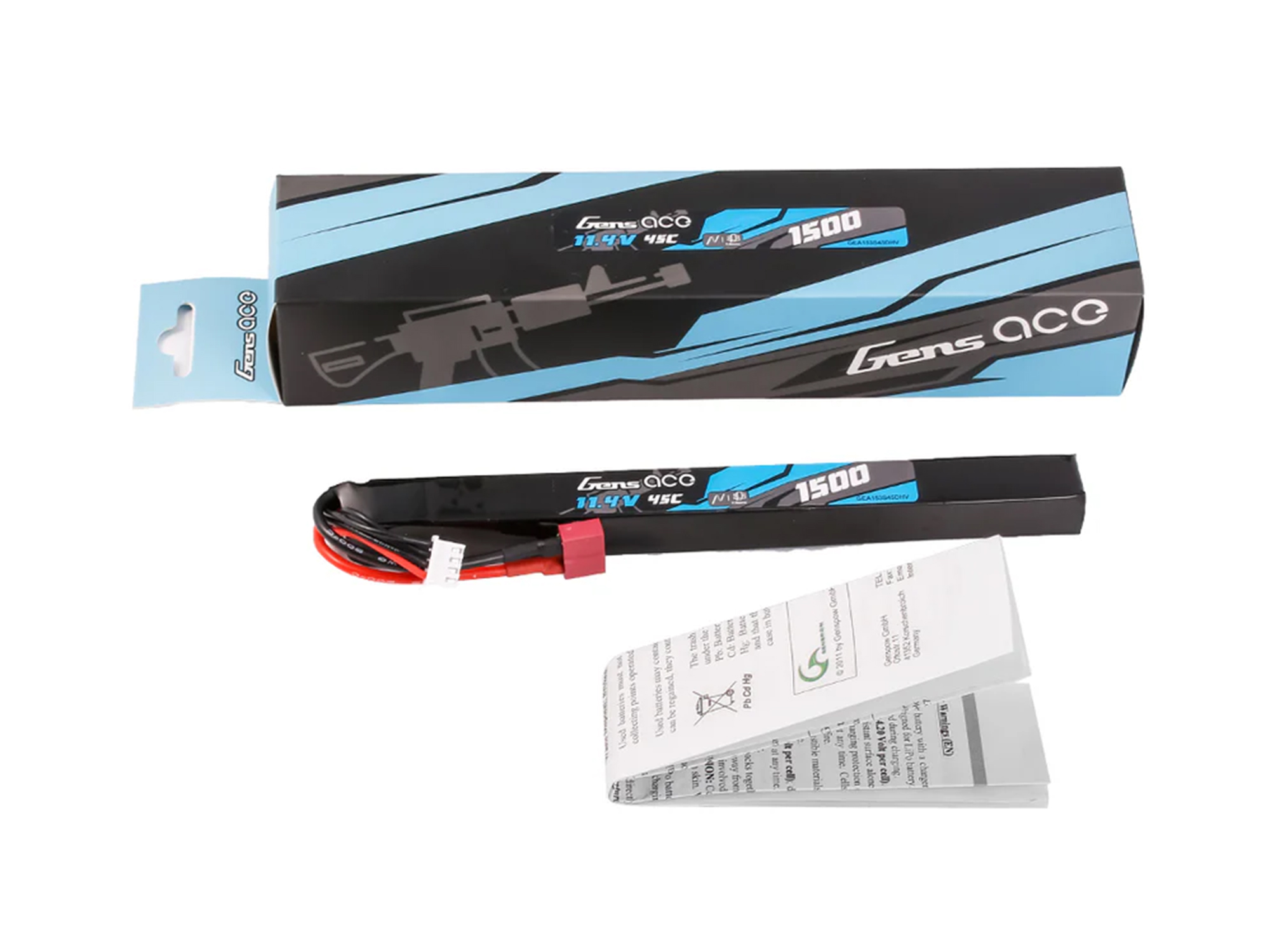 Gens Ace LIPO 1500mAh 11.4V 45C 3S1P Deans(T) High Voltage LIPO Battery Pack