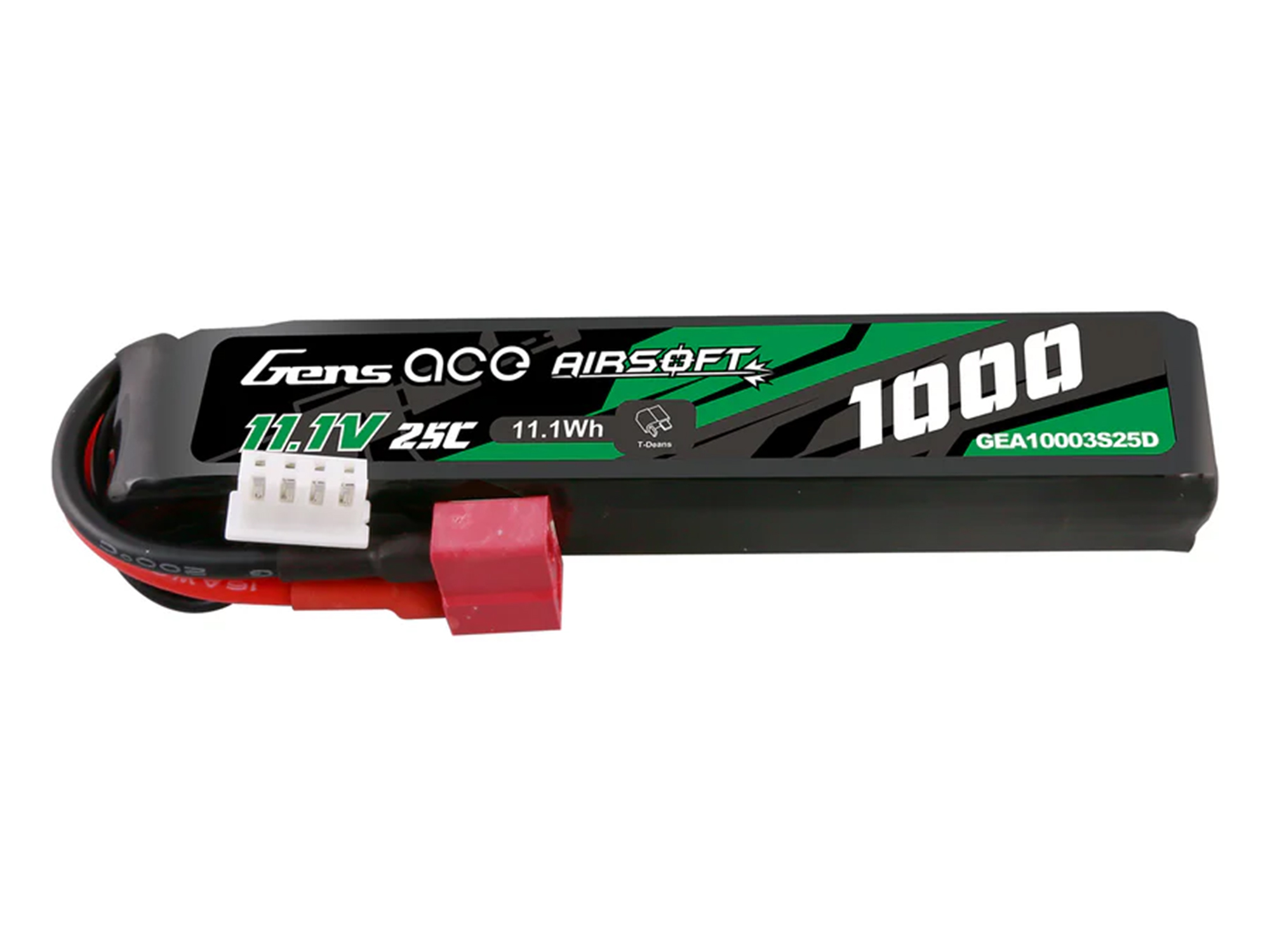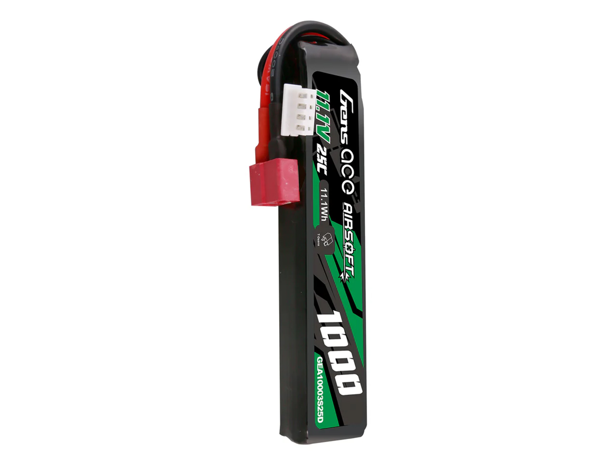 Gens ace 25C 1000mAh 3S1P 11.1V Airsoft Gun Lipo Battery with T Plug is designed specifically to power airsoft gun.