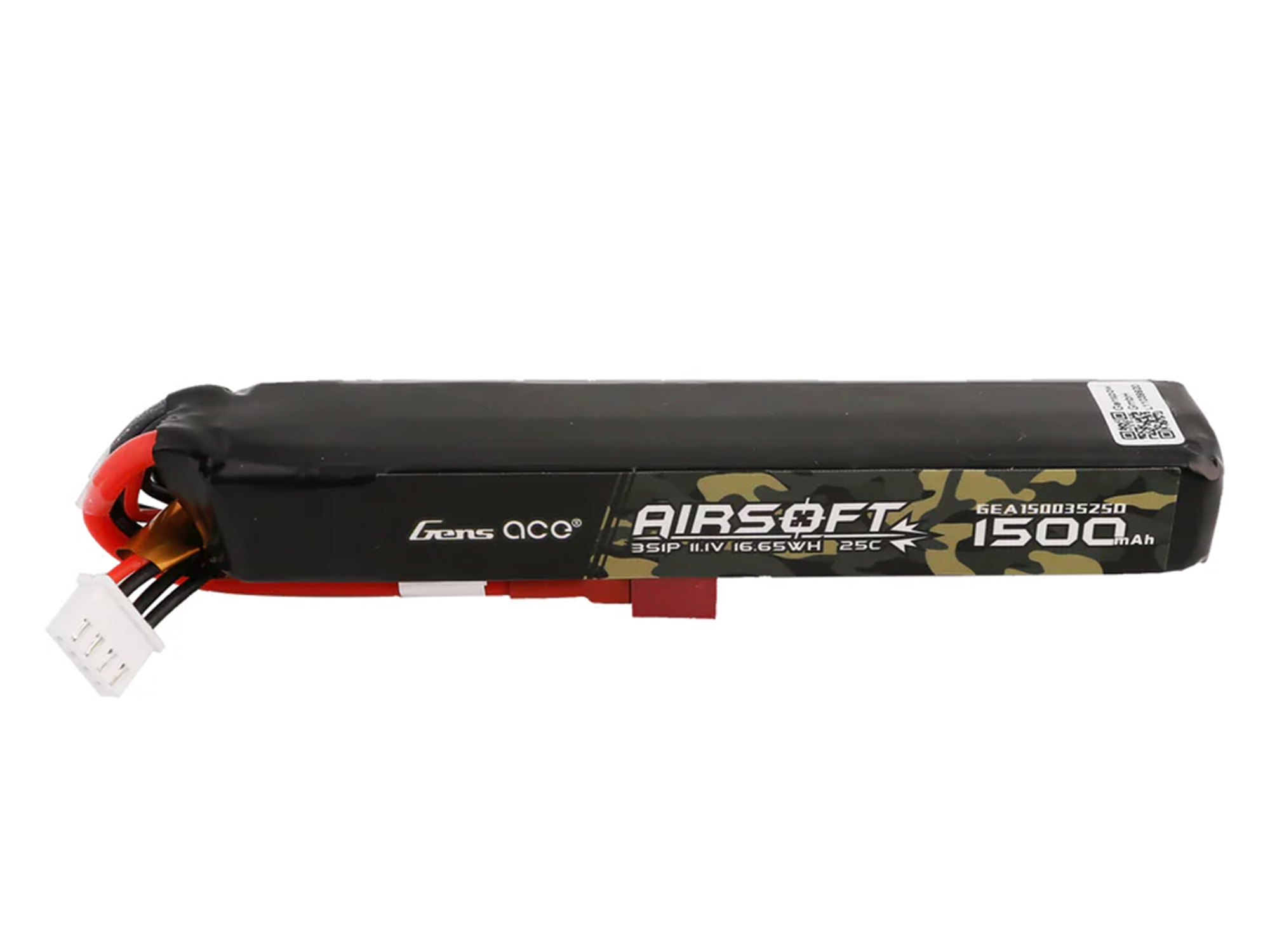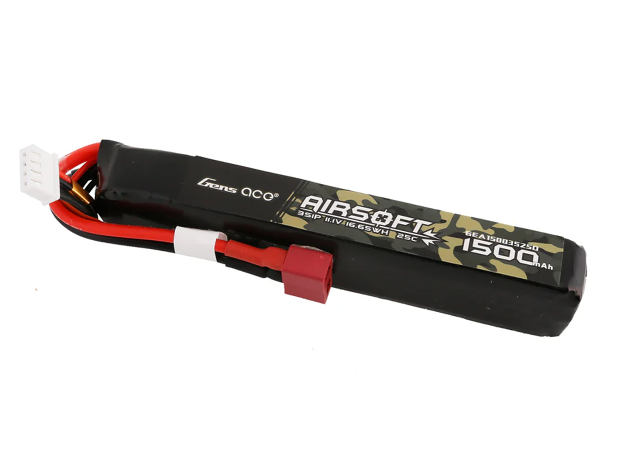 Gens ace 25C 1500mAh 3S1P 11.1V Airsoft Gun Lipo Battery with T Plug is designed specifically to power airsoft gun. Suitable for most AEG like M4;CM16 SCAR AR15 LE STOCK.