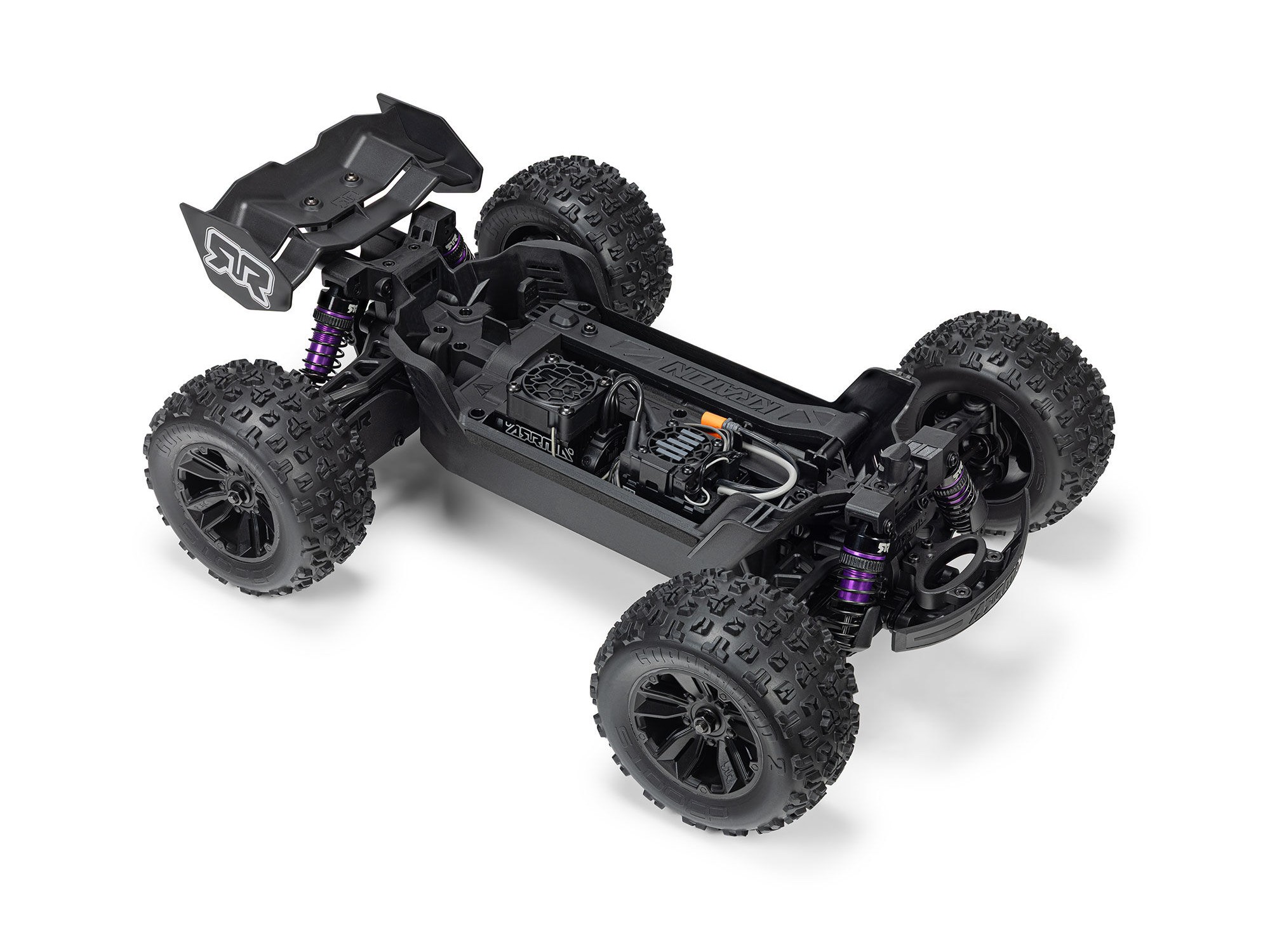 The MINI KRATON 3S BLX 4X4 monster truck body snaps onto the chassis easily, quickly, and securely, and comes off with a simple press-and-release. With no tiny clips to force into place, it's a body attachment system that's perfect even for young bashers.