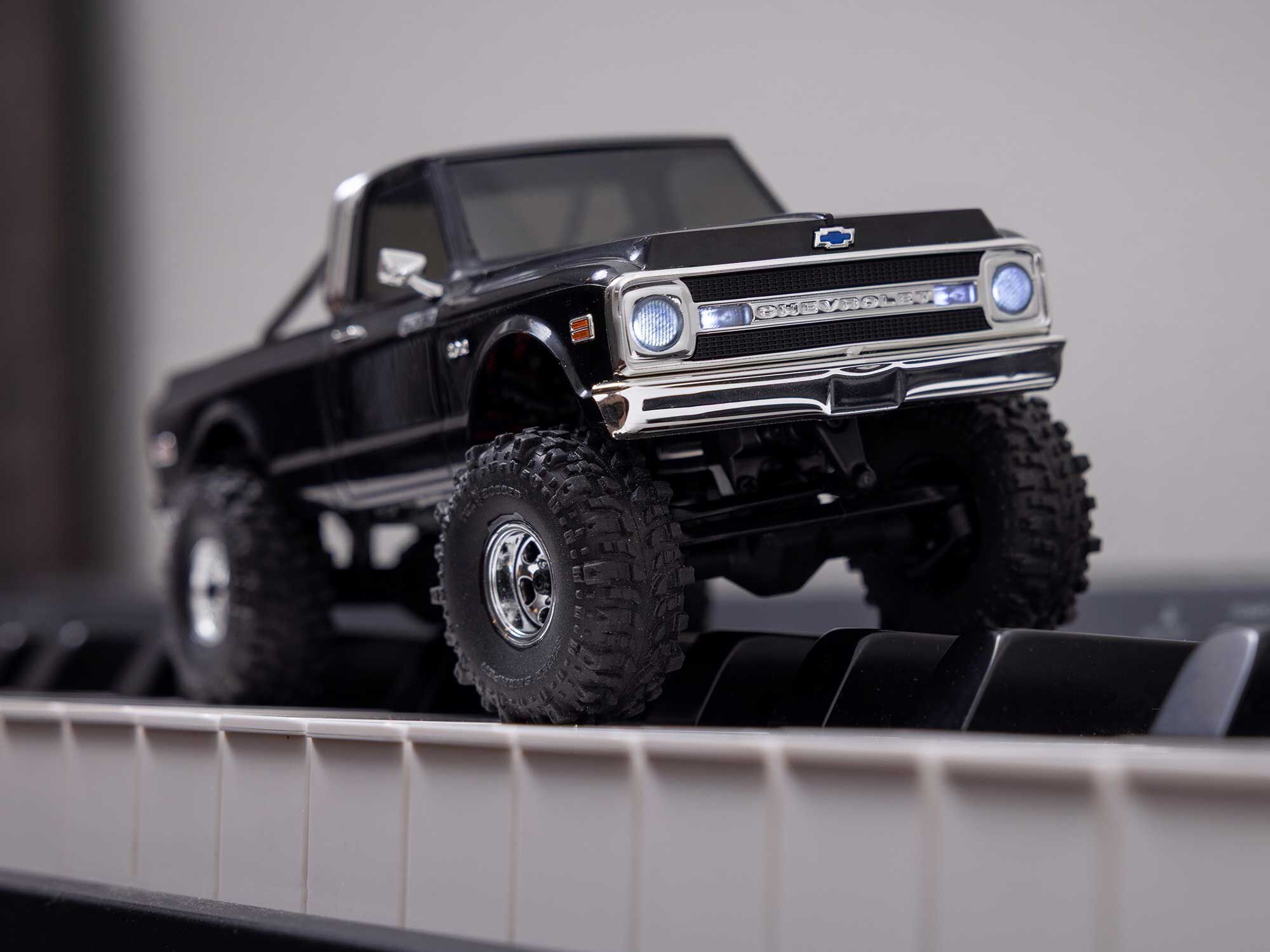 Topping off that trail-ready engineering is a Chevy K10 ABS hard body that proves detailed scale realism can come in any size. An authentic recreation of the full-size truck, the body is complemented by front and rear LEDs and officially licensed Interco Super Swamper tyres. These soft compound tyres with foam inserts provide all the traction needed for outdoor trail action or for crawling across a desktop, table, or cluttered floor. You can turn any space into your personal Rubicon trail!