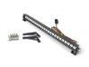 Don't get caught out in the dark! This 150mm LED light bar kit is an ideal accessory for a multitude of RC vehicles looking to add an extra scale element to an otherwise standard vehicle. Best suited for 1/10th vehicles and bigger this economically priced light bar has everything you need to shed light on the trails at night.The kit includes a column support fixing and L-Bracket fixings allowing you to fit this bar in a number of positions on a bodyshell, off a bumper or even a roof rack! The light bar has a 15inch long cable that once connected to your auxiliary (or any other spare channel on the receiver with a switch/button assigned to it on the radio) you will be able to cycle through the 20 different light modes. There light modes range from a Steady bright white mode that can illuminate the darkest of trails, through to a colourful flashing mode that is certain to dazzle!