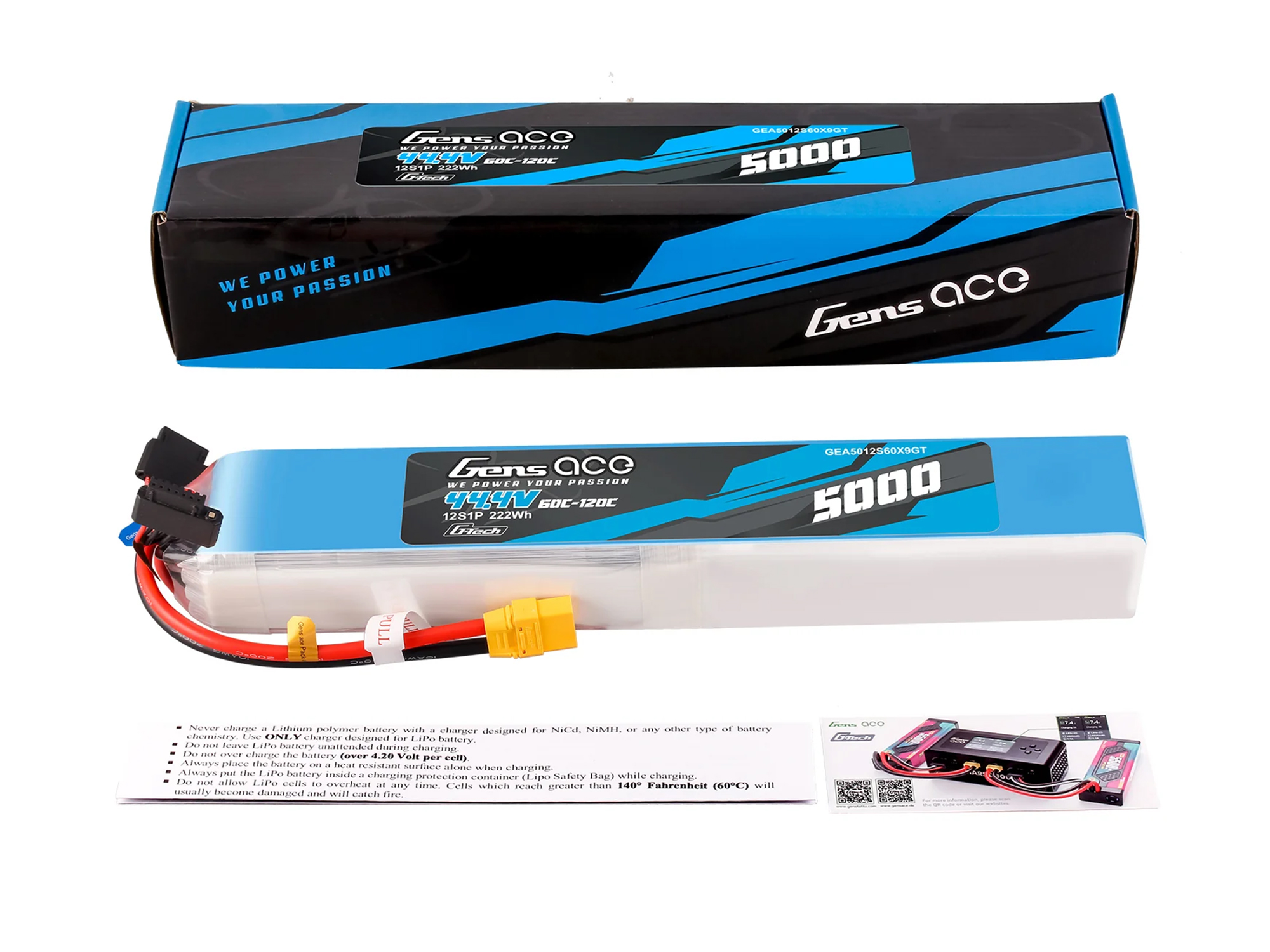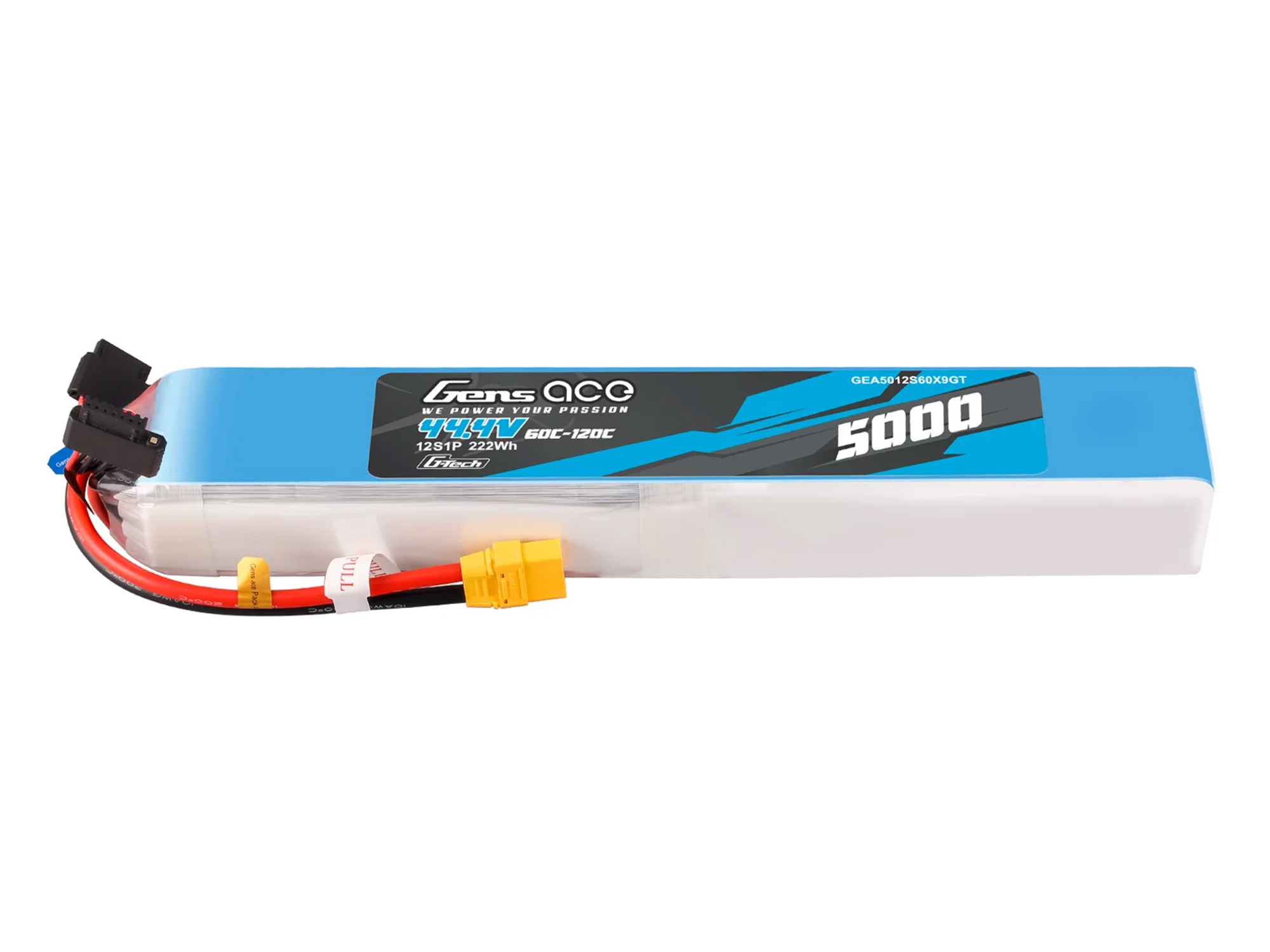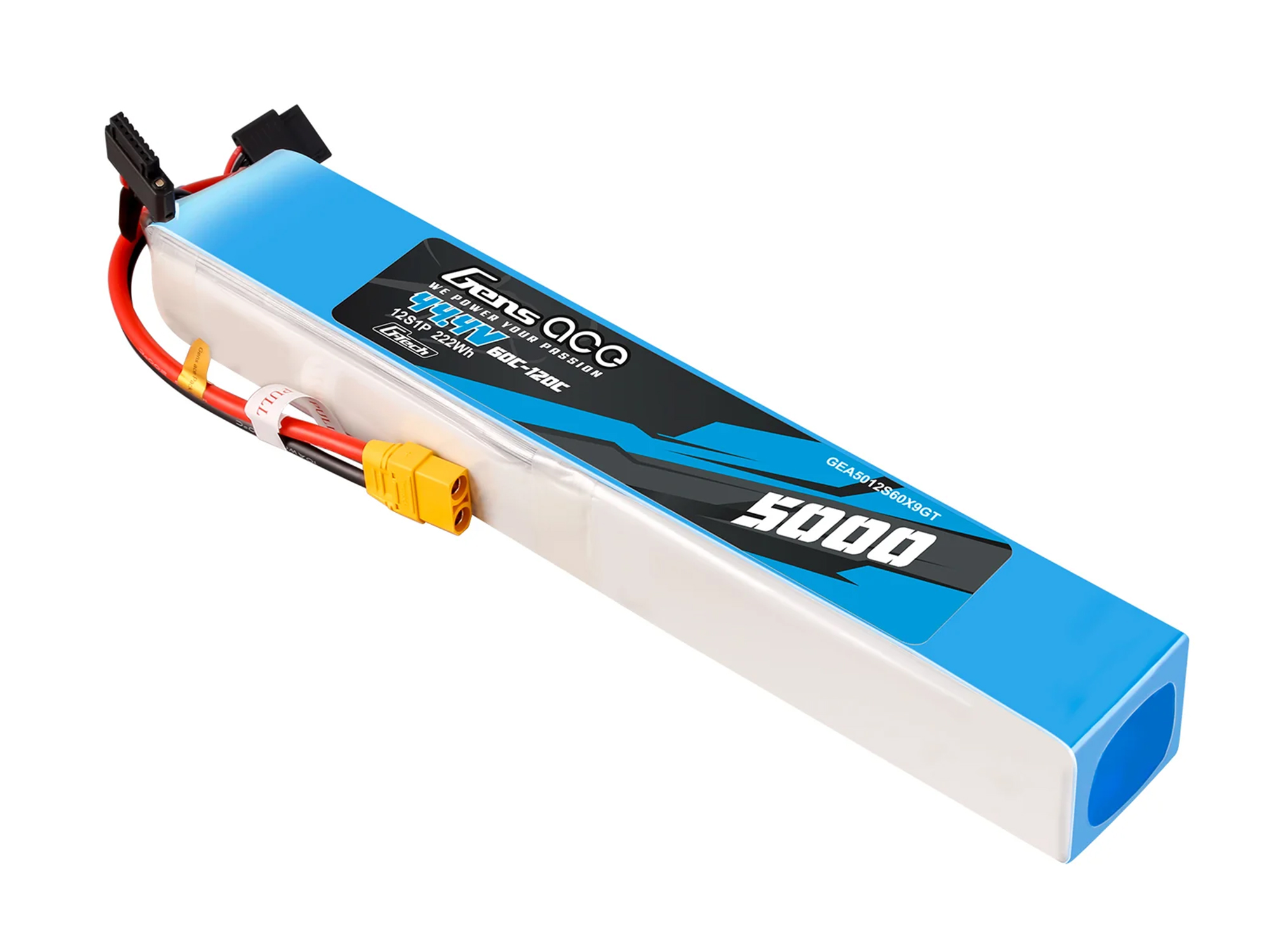 Gens ace lipo 5000mAh 12S1P 60C/120C battery Suited to the following models: large-scale sport and aerobatic airplane models as well as Goblin; Outrage; Align; Thunder Tiger 700 helicopter models etc.