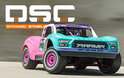 One of those features is the Dynamic Stability Control (DSC) built into the desert truck's Spektrum electronics. With four selectable modes, DSC will automatically correct steering input as needed to improve your control, confidence, and safety, whether you're bashing on high-grip or low-grip surfaces. As you gain experience, just turn off the DSC and succeed with the skills you've learned.