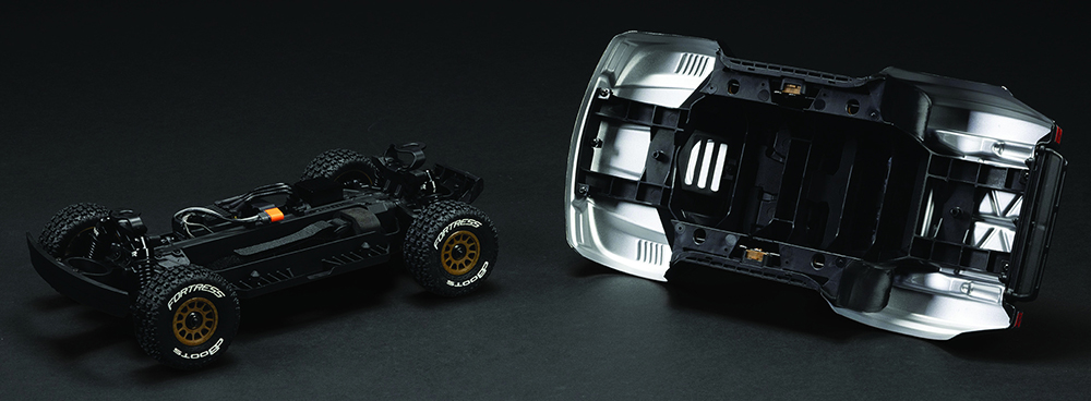 Off-road racing puts full-size desert trucks through brutal tests of performance and endurance. RC versions face their own challenges during no-holds-barred bashing. The MOJAVE GROM 223S comes prepared. Its strong composite chassis is ventilated to help on-board components keep their cool, aided by a high-speed fan integrated into the electronics. Robust metal gears support the enclosed 4WD drivetrain, now equipped with oil-filled differentials.