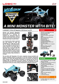 Monster truck fans pack into stadiums to watch the exploits of the Megalodon. Losi puts you behind the wheel with this officially licensed scale version. The Megalodon Mini LMT 4X4 has an injection moulded body with durable rubber fins, capturing the full-scale predator in all its glory.