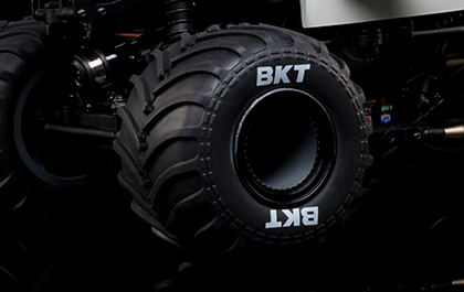 Pro drivers use BKT tyres at Monster Jam competitions around the world, and they've been officially licensed for reproduction on the Megalodon Mini LMT 4X4. The tyres feature a chevron tread design that provides excellent traction. The smooth sidewall transition keeps the tyres from grabbing and causing rollovers.