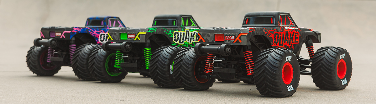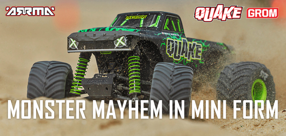 The QUAKE GROM 4X4 RTR Monster Truck is engineered and manufactured to the same high standards of durability and performance that you expect from any ARRMA vehicle. It's just smaller!