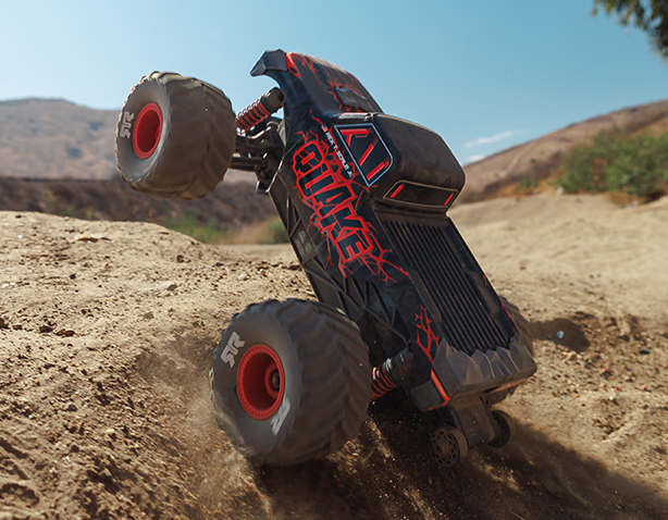 The QUAKE GROM 4X4 RTR Monster Truck is built to bounce and blast. The all-terrain, oil-filled coilover shocks soak up landings like a pro wrestler takes chair shots. Got uneven ground? Dial in your ride height and gain the clearance you need to send it clean - no scraping, no slowing down.