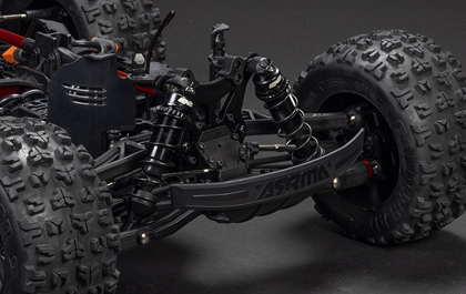 With an all-terrain independent suspension and adjustable 16mm oil-filled shocks on aluminium towers to soak up bumps, the KRATON 6S BLX 4X4 blasts over dirt, asphalt, and grass. If your bashing takes you over uneven surfaces, you can adjust the ride height to increase ground clearance.