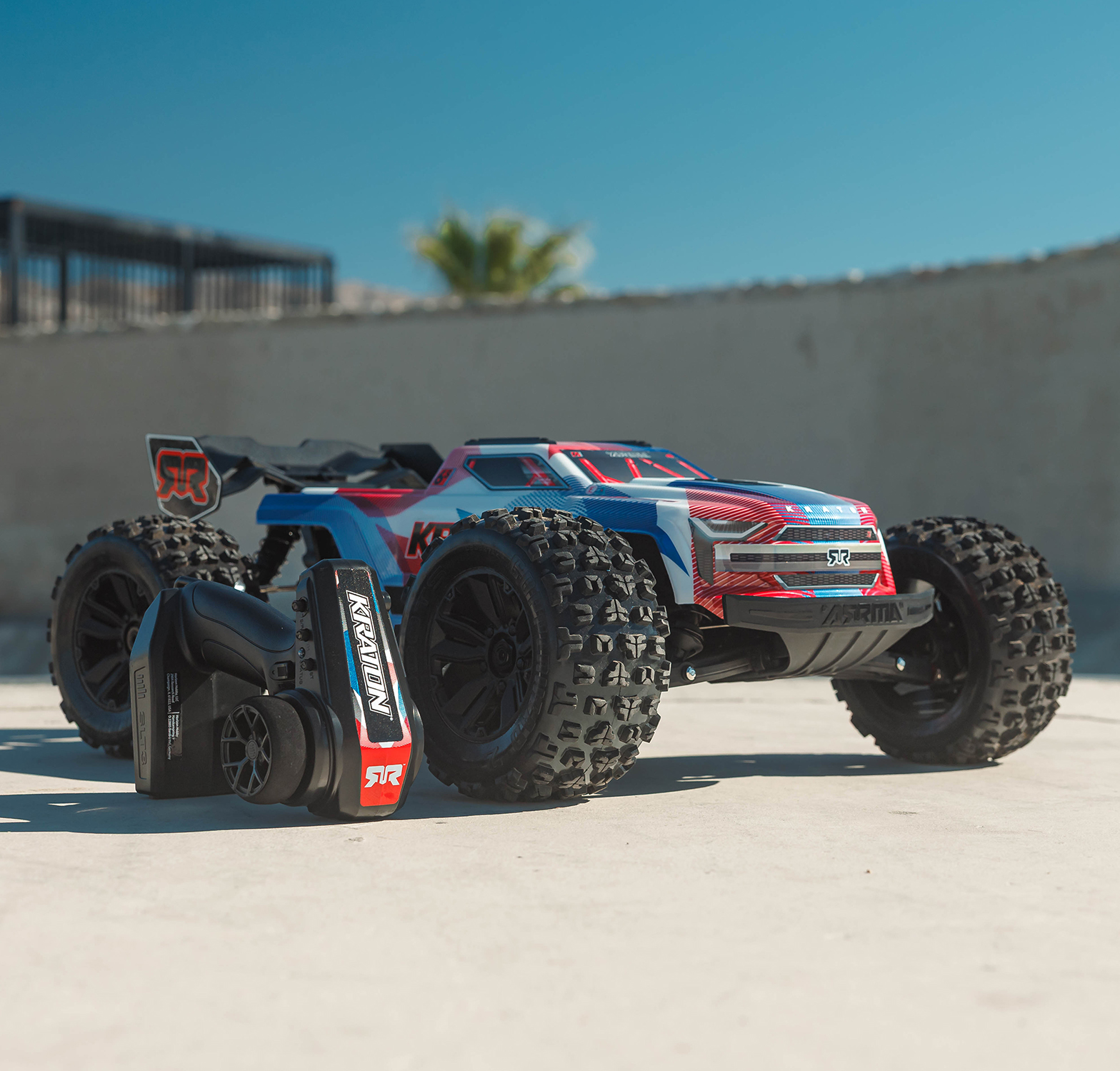 Take the ready-to-run KRATON 6S BLX 4X4 blasting on any terrain, including asphalt, dirt, gravel, or short grass. Set up some ramps or build a few mounds in the dirt - set a new long distance record every time you jump. With your choice of 4S or 6S battery and charger, you'll have everything you need for speed monster truck thrills the way only ARRMA makes them.