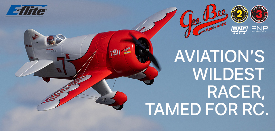 Aviation history produced few designs as unique and recognizable as the Gee Bee R-2, yet RC modelers rarely get the chance to fly one. The E-flite Gee Bee R-2 1.0m is a conveniently sized replica that offers incredible scale detail, modern conveniences, features, and technologies to deliver a truly unmatched flying experience! It's capable of fast and smooth flying at speeds of up to 100 MPH in a dive, along with a variety of aerobatics, and has unexpectedly stable slow-speed handling that makes it easier and more enjoyable for intermediate to experienced pilots to fly.