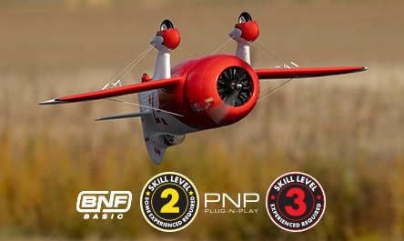 Skill Level 2 aircraft, like this one, are suitable for RC pilots who already have some experience and the skills to assemble, set up, and fly similar class models. You should have the experience and skills necessary to successfully fly models like the E-flite T-28 Trojan 1.1m, Sportix 1.1m, Commander mPd 1.4m, or other similar class models before attempting to fly the Gee Bee R-2 1.0m BNF Basic version.